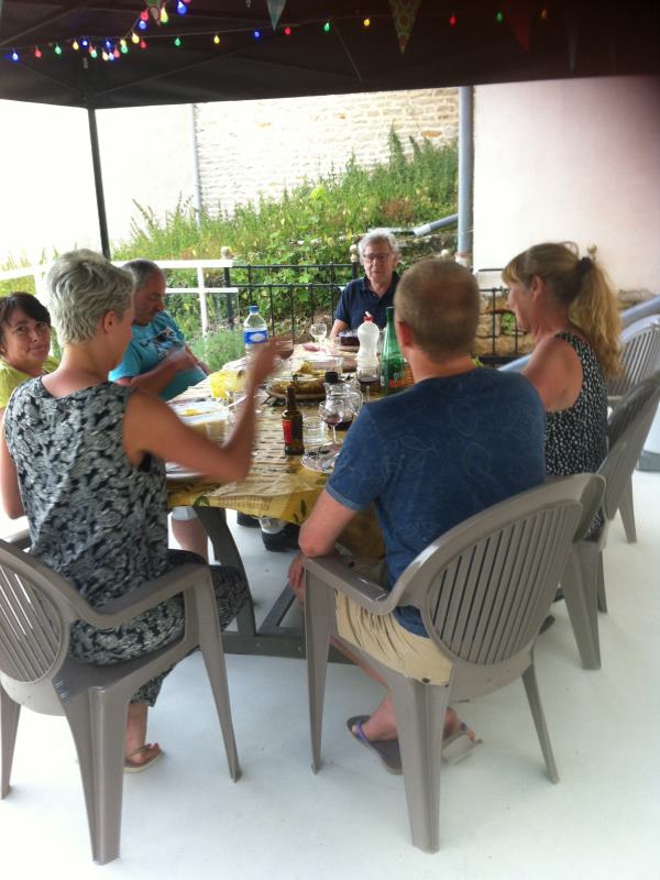 Bij slechter weer of winterweer hebben we in onze voormalige stal een grote eetkamer gemaakt waar we ook gezellig samen kunnen genieten van de maaltijd.